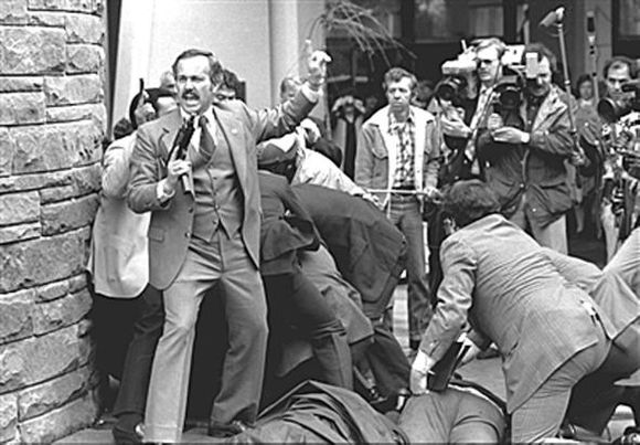 里根总统被刺现场,注意特工手中的乌兹。