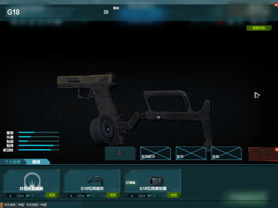 codol这个游戏是以六代为蓝本的,所以g18的数据也源自六代。因为高容错率和解锁较低,g18还是受到了一些玩家的喜爱的,不过普及程度仍然不如pp2000。相对来说***还是拥有一些特色的武器配件,当然官方还是考虑到了双持太过变态,也就没有为***添加添加双持配件。