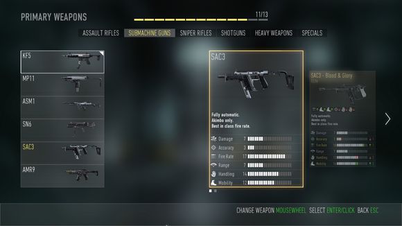 高级战争中也出现了冲锋枪,虽然已经面目全非,但还是可以看见短剑的形状。基础的性能与其他冲锋枪差距较大,不过作为游戏中唯二可以双持的主武器,乘二之后性能就不一样了。因为高级战争的节奏快,是游戏中很普及的一把冲锋枪,配合在滑步奔跑中开枪的技能使用更佳。