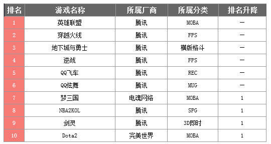2015年1月份网吧点击排行榜于近日出炉,《英雄联盟》与《穿越火线》依旧牢牢地占据着头两名。备受关注的《使命召唤OL》也上涨了5名升至第11,以如今的势头看来,进入前十只是时间问题而已。