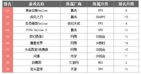 从排行榜上看,腾讯游戏占据了市场的绝对主流地位。其中,《使命召唤OL》自1月11日开启不限号测试以来,玩家的数量有了较大的增长,在腾讯不惜血本在全国各大展开地推的情况下,排名一路上涨也在意料之中。