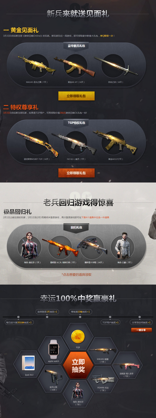 活动须知:3月3日0点后新注册《使命召唤OL》的玩家。