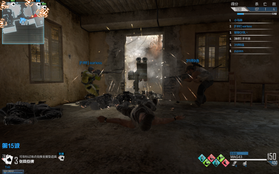 后面进来,发现守这个屋子其实挺不好的,至于为什么,在废墟这个地图上,我守这个点,从来都活不到30关后。于是小编,边打就边劝队友重新换个地方守吧,因为再走几步,换另一栋楼守,好像还更好。