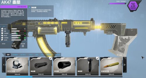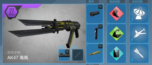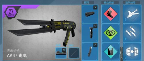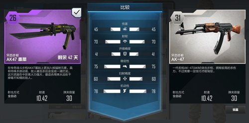 大家都知道,在CODOL中,至今为止没有出现过属性枪,AK47-毒凰亦是如此。如下图,根据属性对比来看,AK47-毒凰的属性和普通AK是一样的。虽然如此,但是AK47-毒凰却拥有3个配件槽,可以有更多的战术装备选择,让你有不一样的体验。同时AK47-毒凰自带战术快刀,突刺时格外带感。