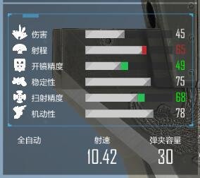 弹道轨迹向上,时不时有左右抖动,会影响玩家长时间扫射,不易压枪。