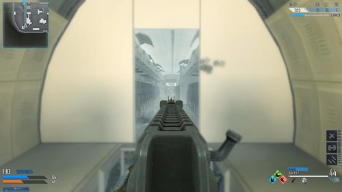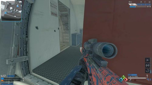 从安检区复活,可以到达左边的大厅,掩体很多,玩家可以自行寻找掩体来避免被子弹射中。