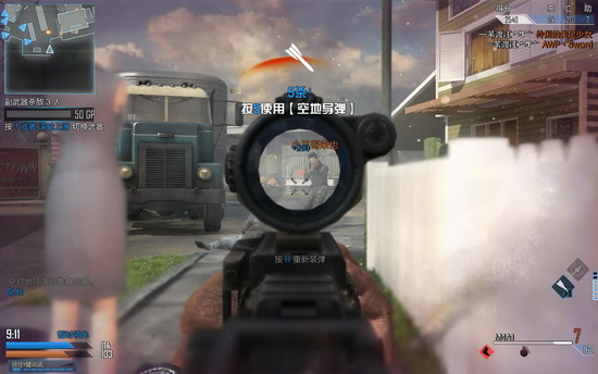 在核弹小镇中,有些位置从远处视角来看较为昏暗。远处的敌人更是显得模糊,这是我们可以在一些敌人常露面的位置进行盲射。瞄准、点射即可,不过也要注意自身的安全哦!