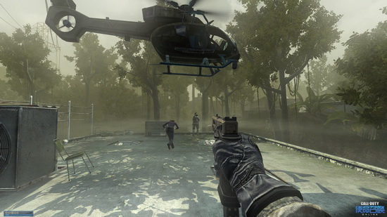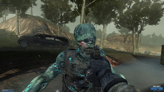 另外由于这图绿化太好,地图里布满了茂密的参天大树,这些树不仅会遮挡视线让你打不准BOSS,而且子弹打到树上还会被挡住导致伤害降低,另外这些树还有一个最烦人的地方。大家在另外三张地图用AGM轰炸BOSS刷出的僵尸群爽歪歪是吧?这图里如果小怪群正好在树丛里你就蛋疼了,你必须很精确地让AGM穿过树之间的细缝炸下去,稍有偏差打在树上了你很可能就只能炸死一两只小怪了。