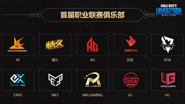 首届CCL冠军联赛,将有包括AE、AG、EXNT、MES、Mr.Gaming、SG、UG、VDA、汉宫、情久在内的十支《使命召唤Online》乃至FPS电竞领域的顶尖战队参加。十强战队中,既有根植于《使命召唤Online》的原生战队,也同样不乏横跨多个项目的国内FPS电竞豪门。