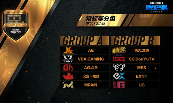 近日,常规赛分组也已正式出炉——2016《使命召唤Online》全国锦标赛冬季赛冠亚军AE和情久战队作为种子队分别位于A、B小组,而VDA、AG、汉宫、MR四支队伍列入A组,SG、MES、EXNT、UG四队位于B组。